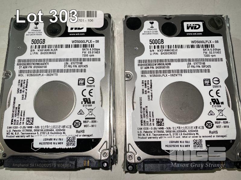 6 x 500GB SATA HARD DRIVES, 2.5", WD WD5000LPLX-08