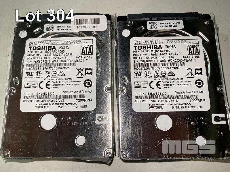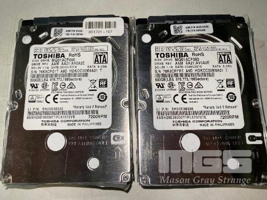 6 x 500GB SATA HARD DRIVES, 2.5", TOSHIBA MQ01ACF050