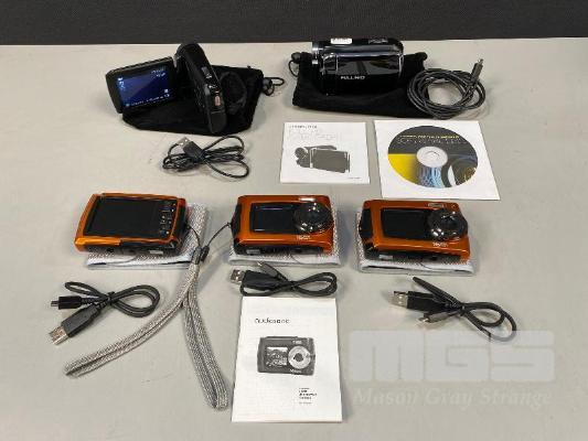2 x FULL HD CAMCORDERS, 4GB CARDS, WITH USB CABLES, 3 x AUDIOSONIC DIGITAL STILL CAMERAS, 2GB CARDS WITH USB CABLES