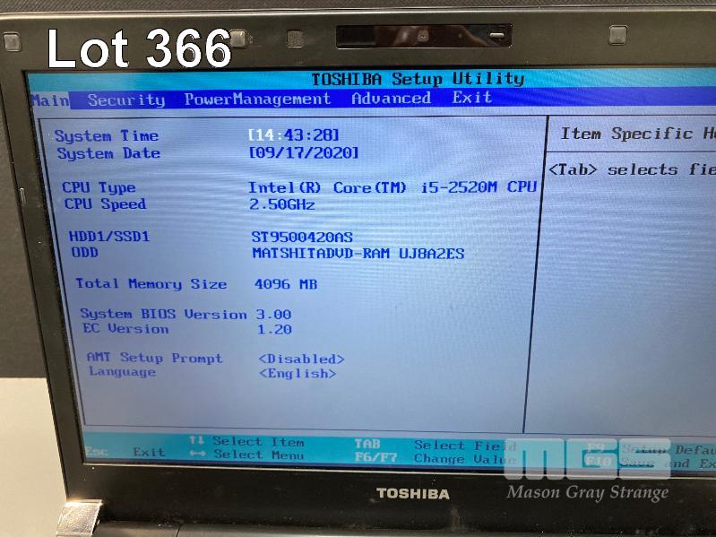 LAPTOP, TOSHIBA PORTEGE R830 (PT321A-01K00201), CORE i5 2520M (2ND GEN) @ 2.5GHz, 4GB DDR3 RAM, 500GB SATA HDD, DVD-RW, 13.3" WIDESCREEN (1366x768), INTEL HD VIDEO, Wi-Fi, BLUETOOTH, WINDOWS 7 PRO INSTALLED W/ LICENSE, DOCKING STATION & POWER SUPPLY S/N:8B192921H