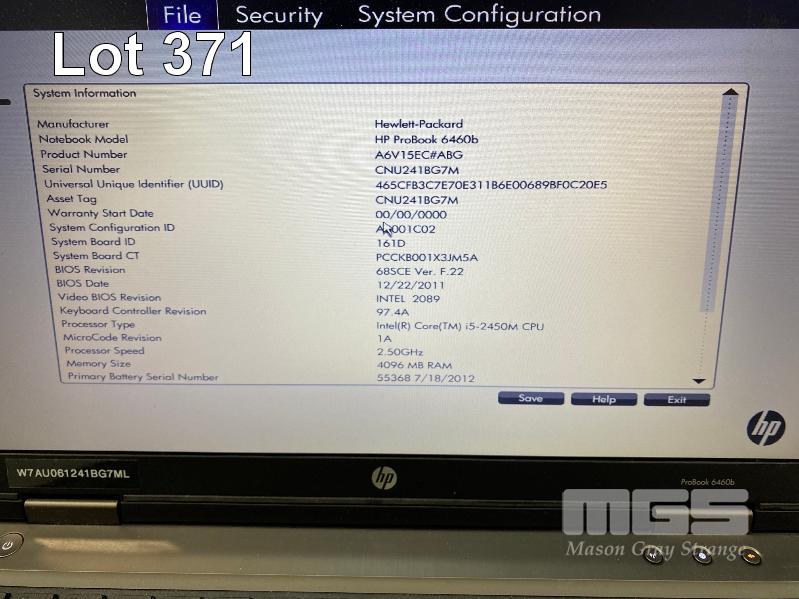 LAPTOP, HP PROBOOK 6460b (A6V15EC), CORE i5 2410M (2ND GEN) @ 2.3GHz, 4GB DDR3 RAM, 500GB SATA HDD, DVD-RW, 14" WIDESCREEN (1600x900), INTEL HD VIDEO, Wi-Fi, BLUETOOTH, WINDOWS 7 PRO INSTALLED W/ LICENSE & POWER SUPPLY (NOTE: BATTERY NOT CHARGING) S/N:CNU241BG7M