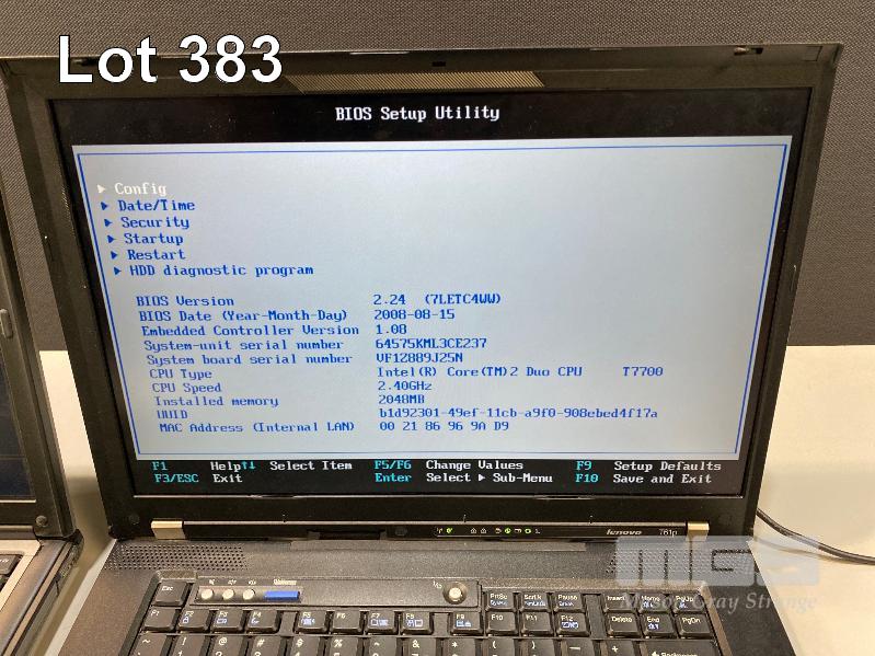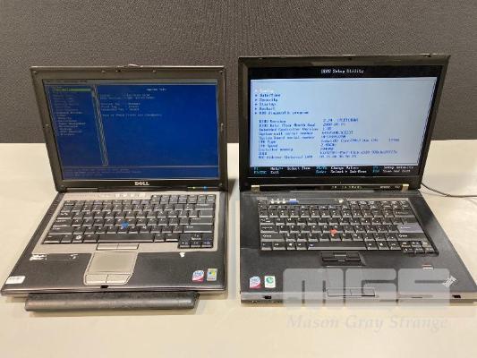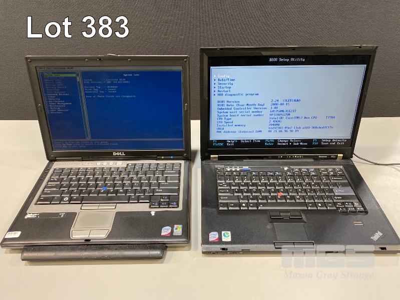 2 x LAPTOPS, DELL LATITUDE D630, CORE 2 DUO 2GHz, 3GB RAM, 500GB HDD LENOVO THINKPAD T61p, CORE 2 DUO T7700 @ 2.4GHz, 2GB RAM, 100GB HDD (NO BATTERY, BIOS PASSWORD PROTECTED) (WITH POWER SUPPLIES) S/N:HL4GW1S,