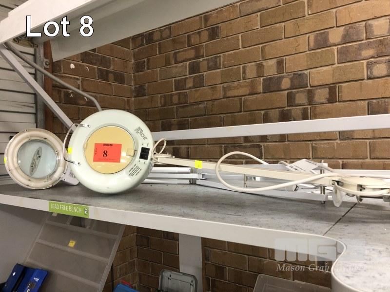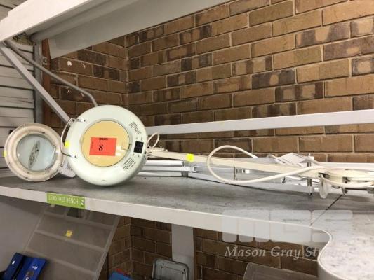 2 x MAGNIFICATION LAMPS, SUPERLUX MOD: LSX 240V BENCH MOUNT, ADJUSTABLE ARMS, 1 MOUNT ONLY