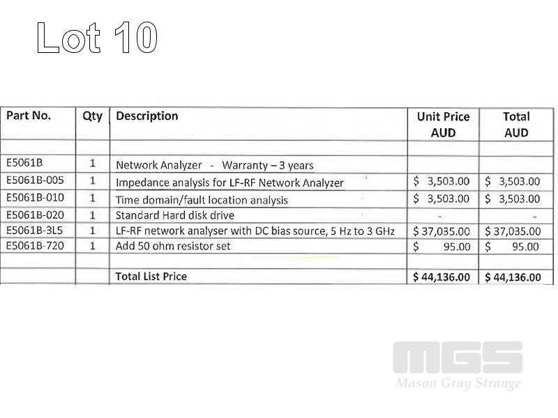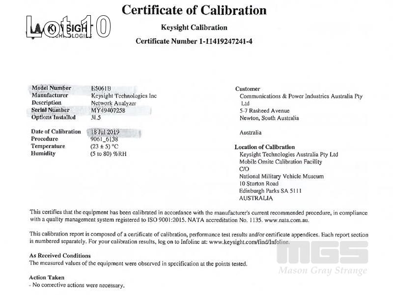 NETWORK ANALYSER, KEYSIGHT MOD: E5061B-ENA SERIES CALIBRATION DATE: JULY 2019 5hz-3ghz OPTIONS/UPGRADES IMPENDANCE ANALYSIS FOR LF-RF NETWORK ANALYZER TIME DOMAIN/FAULT LOCATION ANALYSIS LF-RF NETWORK ANALYSER WITH DC BIAS SOURCE, 5hz-3ghz WITH ACCESSORIES, MANUALS, CABLES, CONNECTORS, ETC
