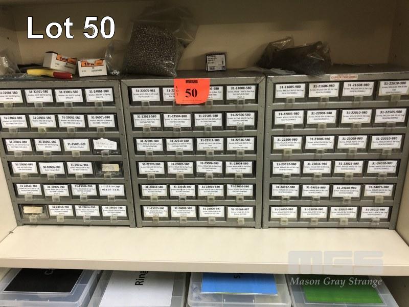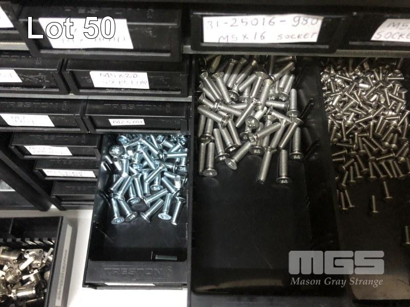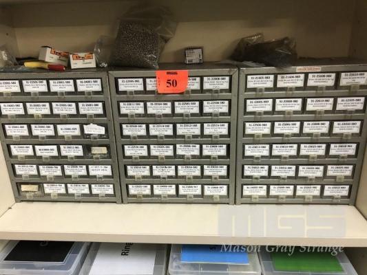 3 x 24 DRAWER PARTS UNITS, STAINLESS STEEL HARDWARE, WASHER,S NUTS, SCREWS & BOLTS & PHILIPS CONNECTORS, 1 x BOX, CONTENTS 2 x SHELVES