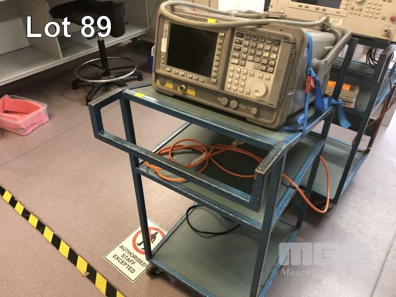 SPECTRUM ANALYSER, AGILENT MOD: E4411B SERIES: ESA-L 9khz-1.5ghz 240V WITH STEEL FRAME TROLELY, 240V POWER DISTRIBUTION