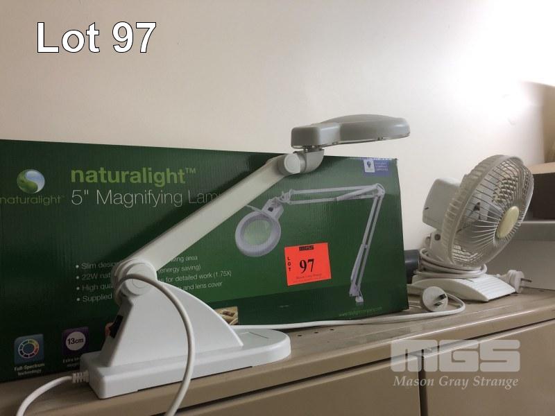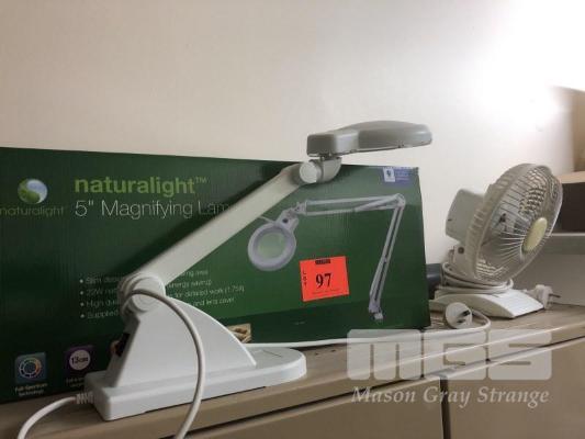 PAIR MAGNIFYING LAMPS, 240V & DESK FAN
