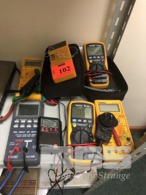 7 x ASSORTED TEST METERS GOLDSTAR MULTIMETER, ESCORT ELC-1310, LCR METER, TESTO THERMOMETER DIGITEC MULTIMETER FLUKE 21 MULTIMETER