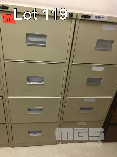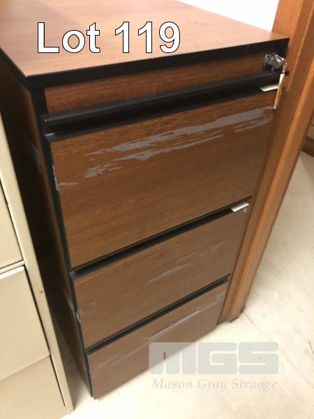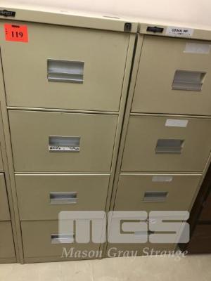 PAIR GODFREY 4 DRAWER STEEL FILING CABINETS, BEIGE & TIMBER LAMINATE 3 DRAWER FILING CABINET