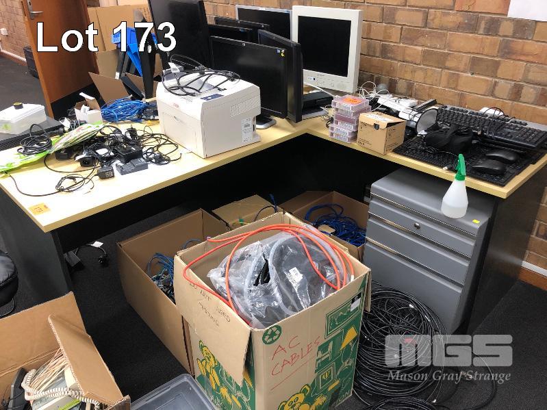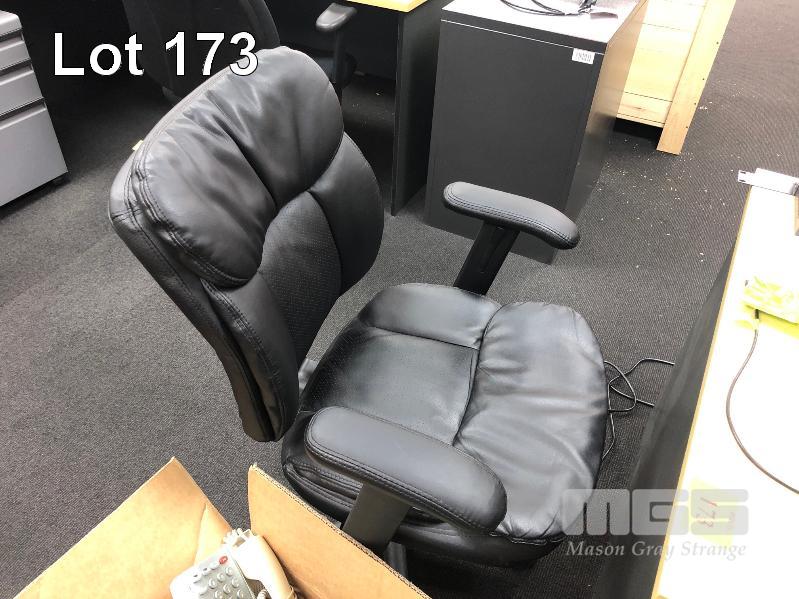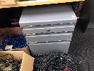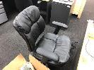 DESK WITH RETURN, 2 TONE BEECH/STORM LAMINATE, 180 x 80cm, GAS LIFT OFFICE CHAIR, BLACK FABRIC & GREY STEEL UNDERDESK MOBILE