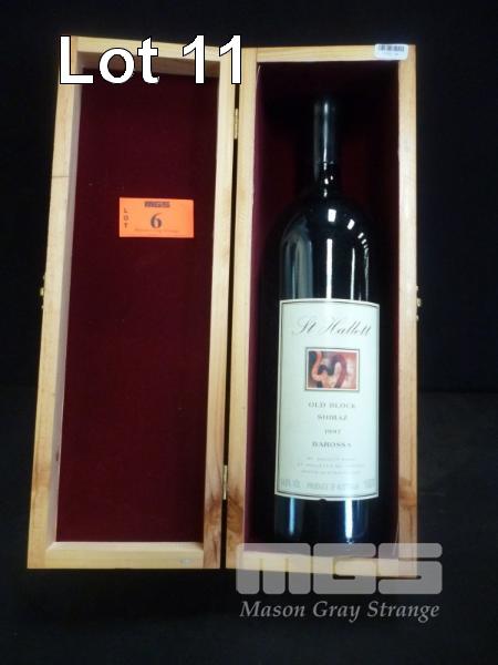 1997 ST HALLETT OLD BLOCK SHIRAZ MAGNUM, IN TIMBER CASE (CORK LEAKAGE)