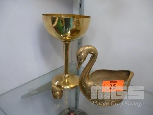 BRASS CHALICE, SWAN VASE & MOUSE