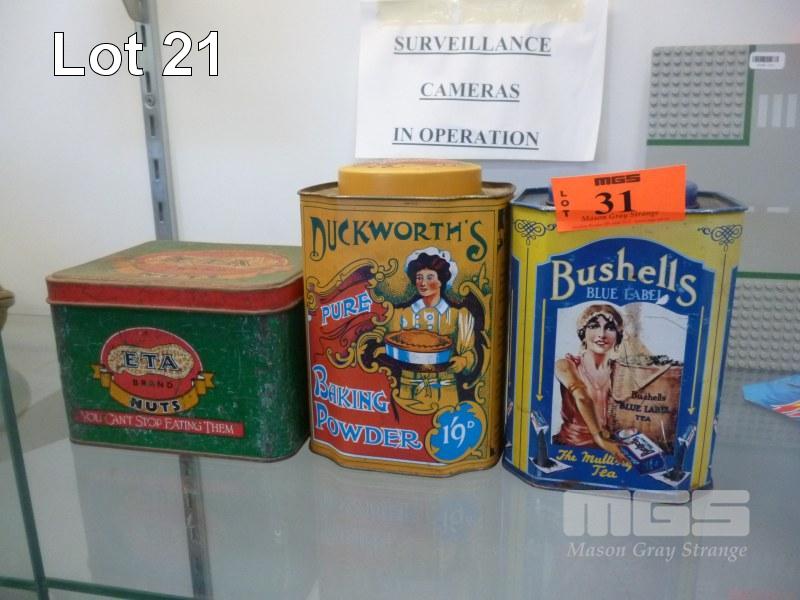ETA NUTS, BUSHELL & BAKING POWDER TINS