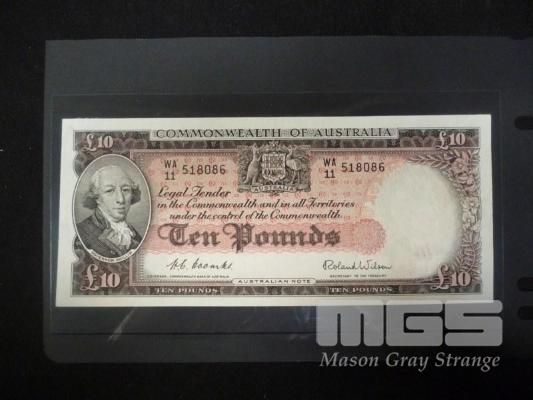 1954 10 POUND AUSTRALIAN NOTE COOMBS WILSON APPEARS HIGH GRADE