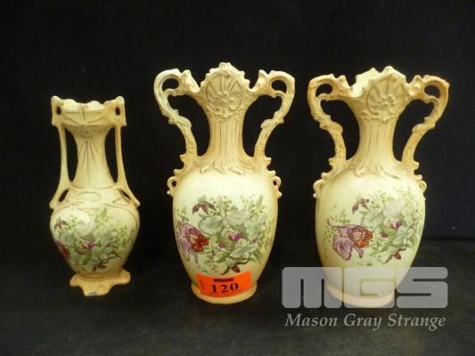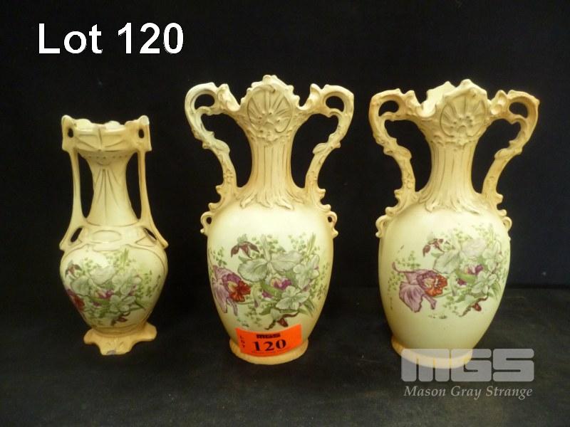 3 x EARLY HAND PAINTED CERAMIC VASES