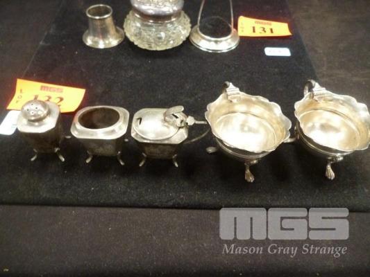 SILVER 90% CRUET SET & HALLMARKED FOOTED BOWLS