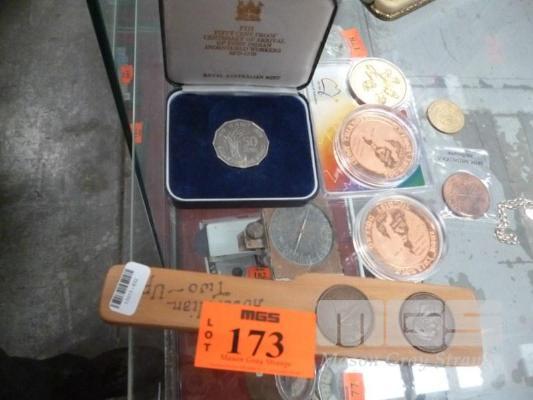 ASSORTED COINS & TOKENS & STERLING SILVER BRACELET