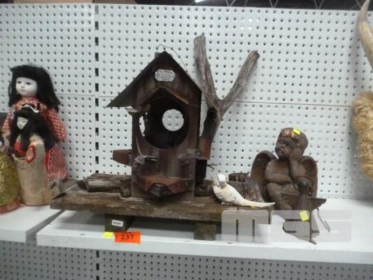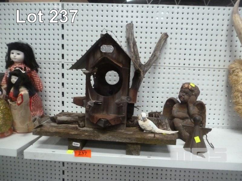 THE ORIGINAL EUMINDI BIRD HOUSE, CAST IRON BELL & GARDEN STATUE