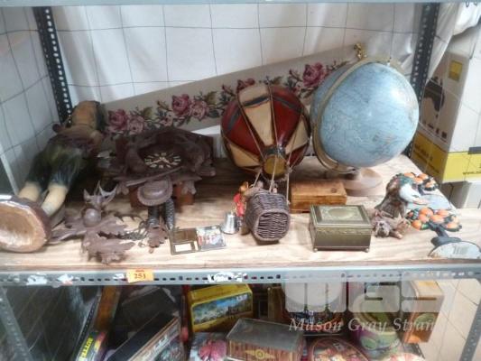 CUCKOO CLOCK, READERS DIGEST GREAT WORLD GLOBE, PLASTER STATUE, BALLOON ORNAMENT, ETC