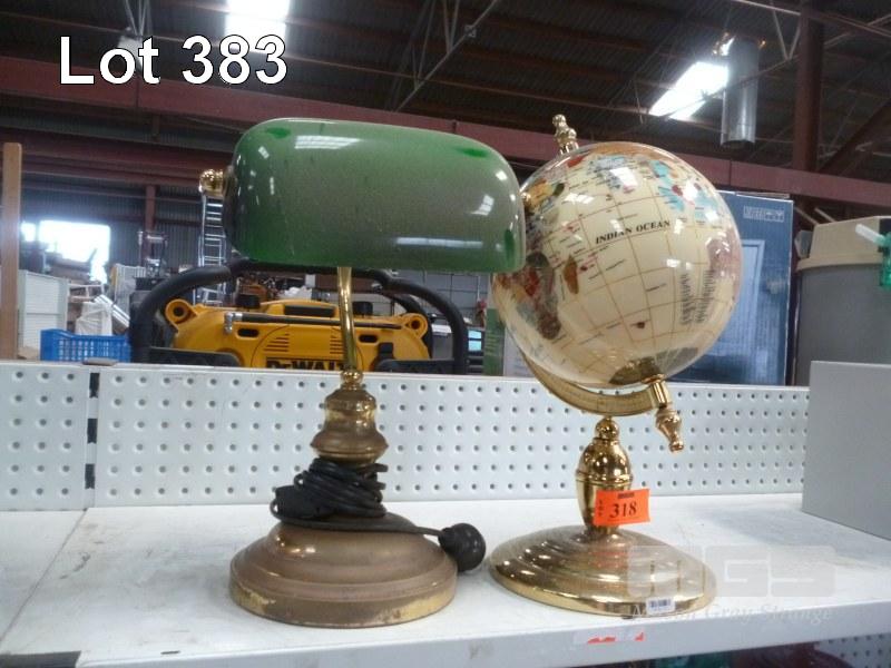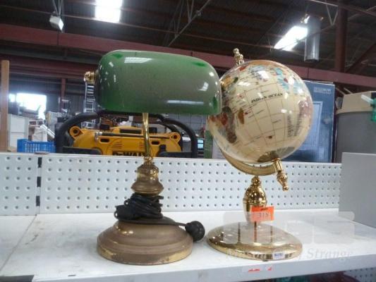 INLAY STONE WORLD GLOBE & BANKERS LAMP