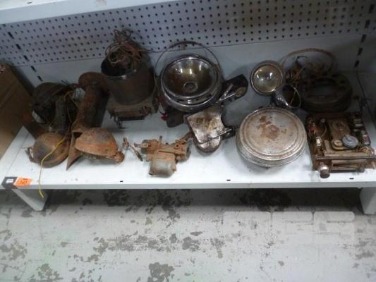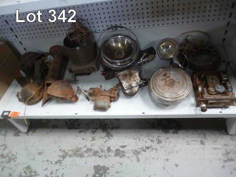 COLLECTION VINTAGE AUTOMOTIVE COMPONENTS, MOPAR & BATHURST RADIOS, CAR HORNS, LIGHTS, ETC