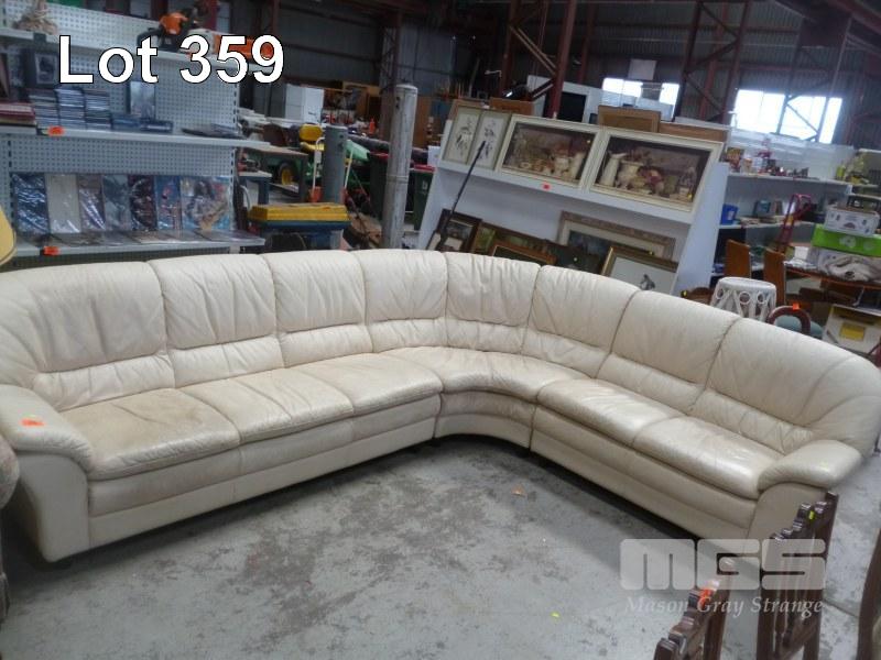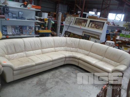 BEIGE LEATHER CORNER LOUNGE, 6 SEATER
