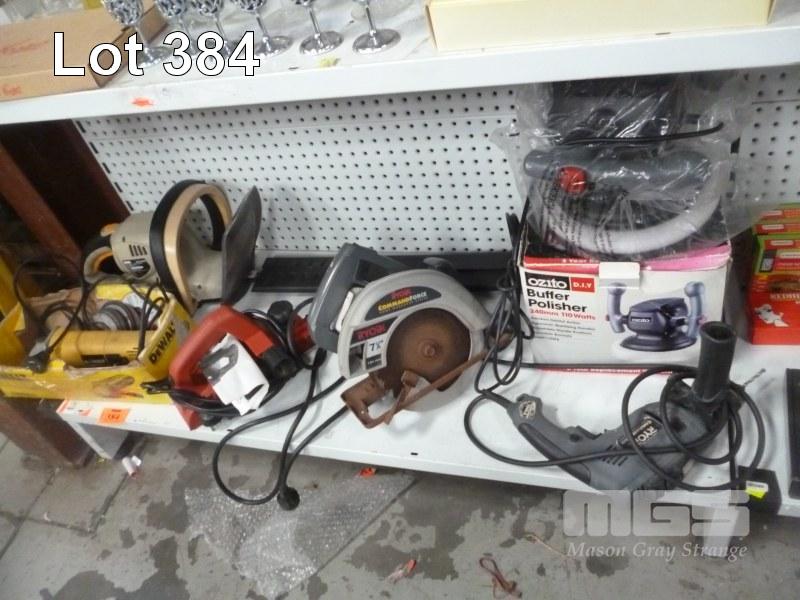 ASSORTED POWER TOOLS INCLUDING CIRCULAR SAW, GRINDER, DRILL & NEW CAR POLISHER