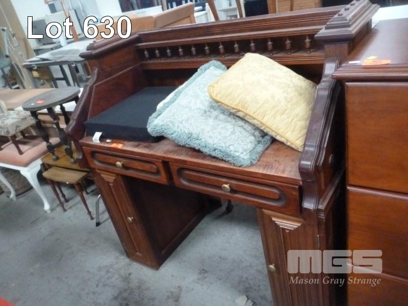SOLID TIMBER WRITING DESK, EDWARDIAN STYLE, 2 DRAWER WITH 2 DOOR UNDERSTORAGE & GAS LIFT CHAIR