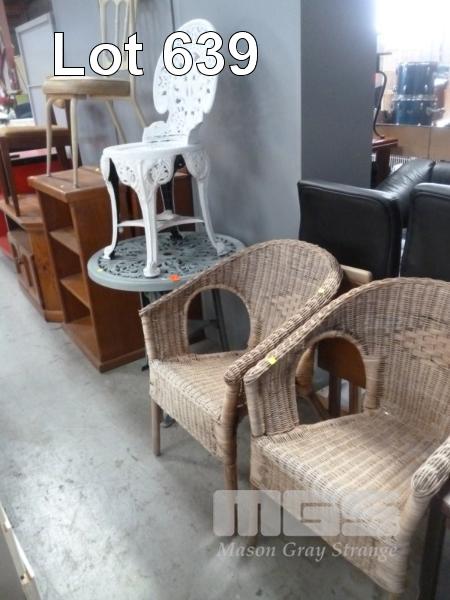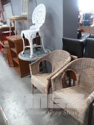 PLASTIC OUTDOOR TABLE & 1 x CHAIR, 2 x WOVEN CANE CHAIRS & 3 x FOLD UP TABLES