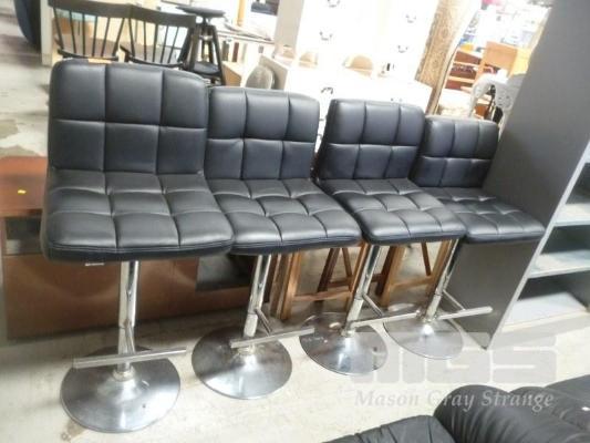 SET 4 BLACK VINYL BAR STOOLS, CHROME BASE, ADJUSTABLE