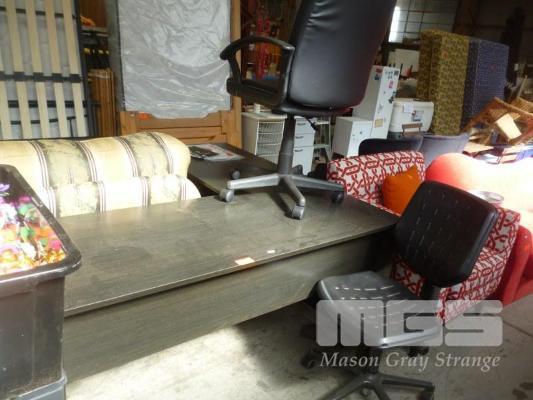 BLACK TIMBER LAMINATE CORNER OFFICE DESK, WITH 2 x OFFICE CHAIRS
