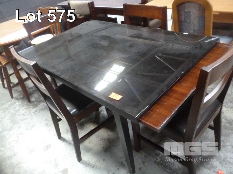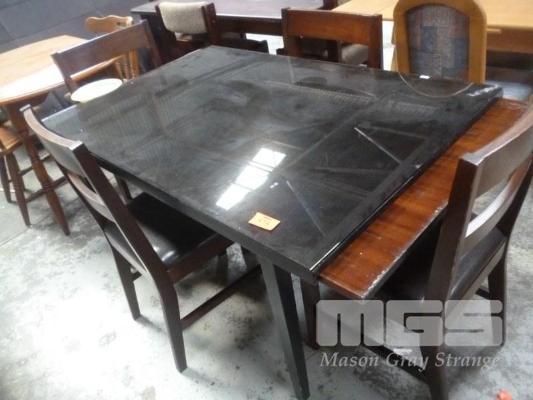 TIMBER 5 PIECE DINING SUITE, INCLUDING RECTANGULAR TABLE, BLACK PAINTED INSERT, GLASS PROTECTIVE TOP & 4 x CHAIRS