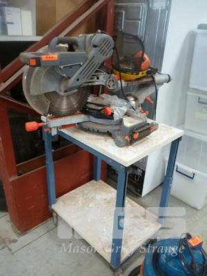 OZITO 305mm SLIDING COMPOUND SAW, ON MOBILE WORK TABLE