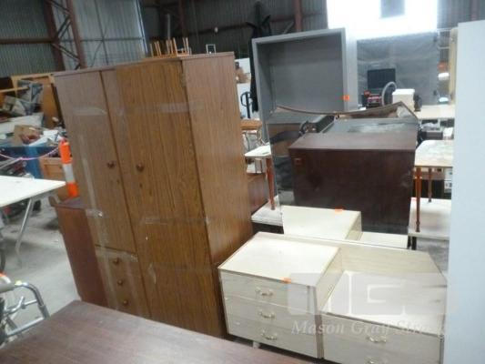 BEIGE TIMBER LAMINATE DRESSER & TIMBER LAMINATE WARDROBE