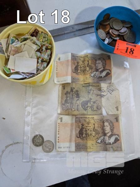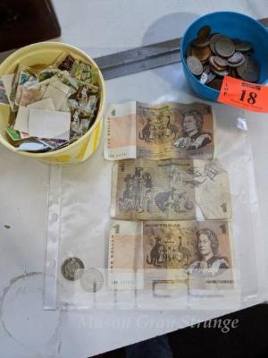 3 x AUSTRALIAN $1.00 PAPER BANKNOTES, KNIGHT/STONE, ASSORTED COINS & STAMPS