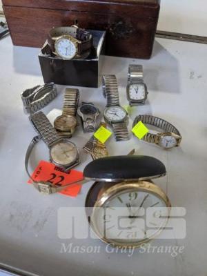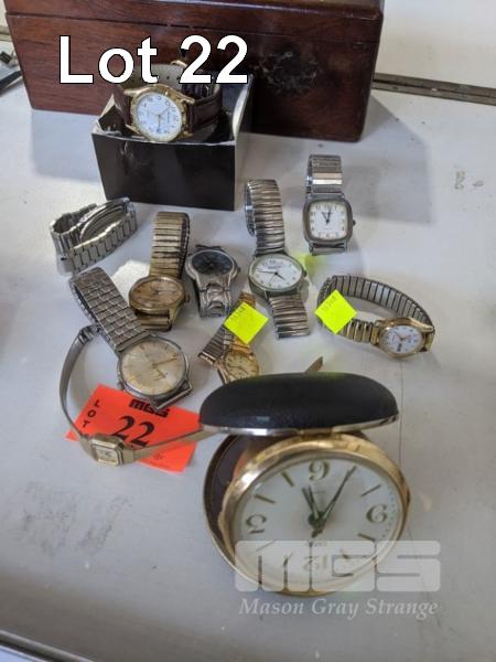 CORAL TRAVEL CLOCK & 7 x ASSORTED LADIES & GENTS WRISTWATCHES