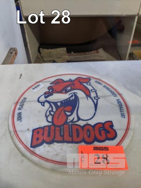 BULL DOGS MARBLE PLAQUE, JOHN PLATTEN 1984 MAGAREY MEDALIST