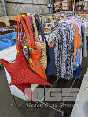ASSORTED CLOTHING & HANDBAGS, (NOT RACK)
