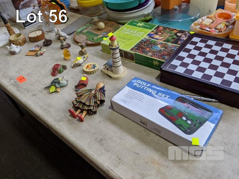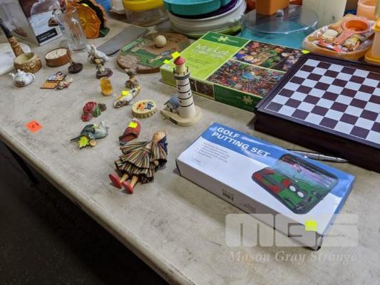 ASSORTED HOMEWARES, ORNAMENTS & GAMES, 1 x TABLE