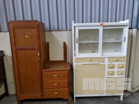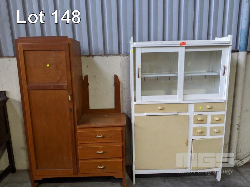 WHITE & BEIGE PAINTED KITCHEN DRESSER & ROBE