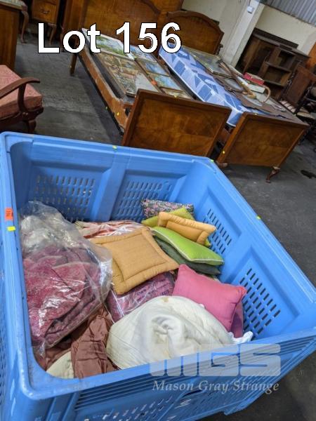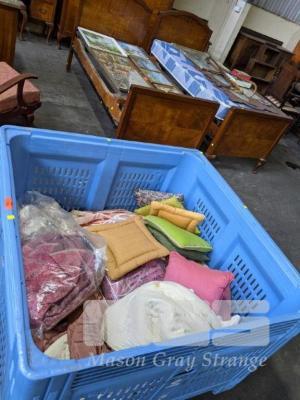 ASSORTED BLANKETS, CUSHIONS, ETC (NOT BIN)