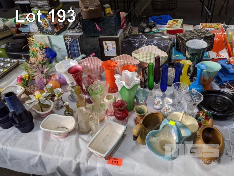 ASSORTED GLASS & CERAMIC VASES, ETC