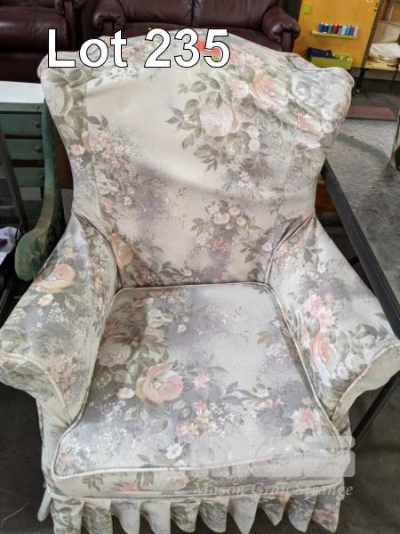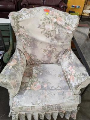 FLORAL FABRIC UPHOLSTERED WING BACK CHAIR