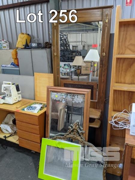 PINE MIRROR BACKED HALL STAND & 3 x ASSORTED MIRRORS