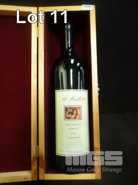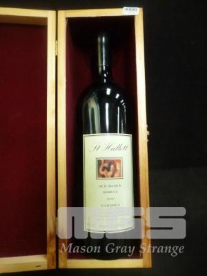 1997 ST HALLETT OLD BLOCK SHIRAZ MAGNUM, IN TIMBER CASE (CORK LEAKAGE)