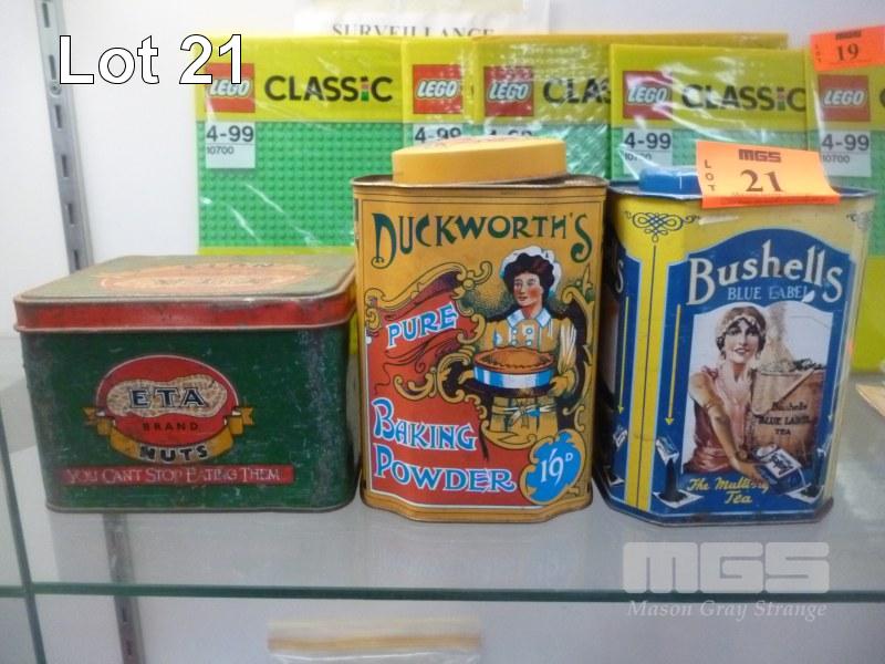 ETA NUTS, BUSHELL & BAKING POWDER TINS