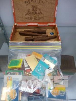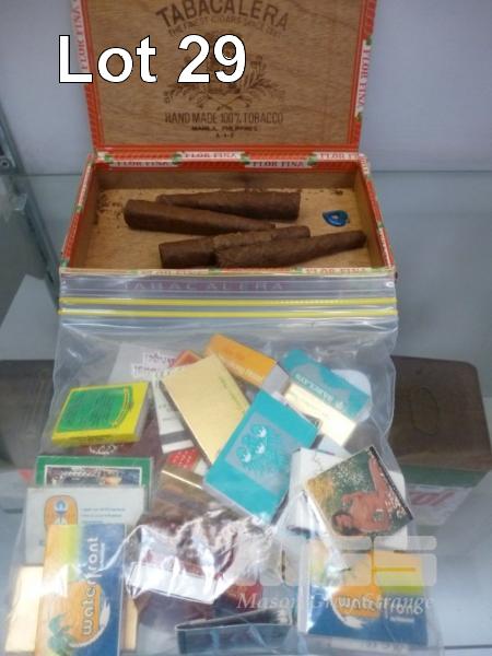 MATCH COLLECTION, CIGAR BOX & CONTENTS OF 4 X OLD CIGARS