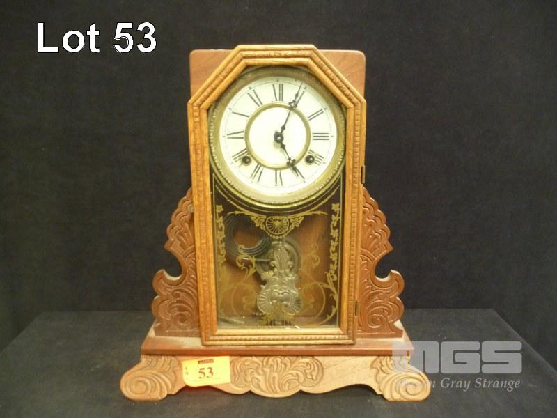 CONANT TIMBER MANTLE CLOCK, EIGHT-DAY-SPRING-STRIKE