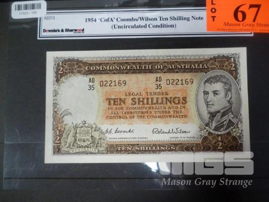 COMMONWEALTH OF AUSTRALIA, 1954, TEN SHILLINGS BANKNOTE, COOMBS/WILSON, AD35 022169, UNC