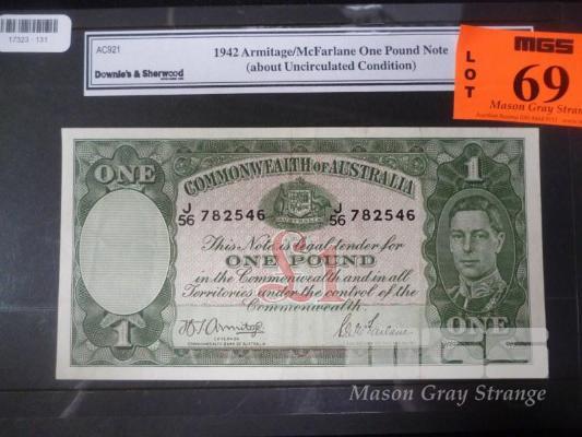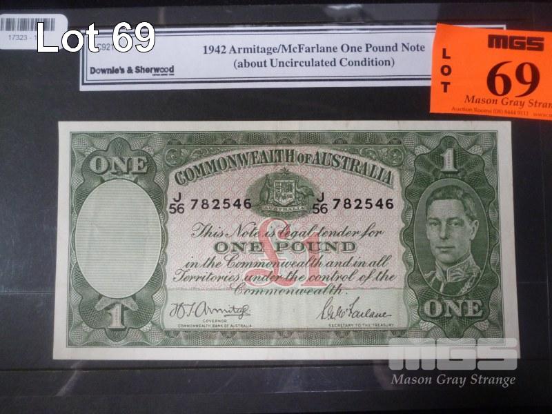 COMMONWEALTH OF AUSTRALIA, 1942, ONE POUND BANKNOTE, ARMITAGE/McFARLANE, J56 782546, aUnc